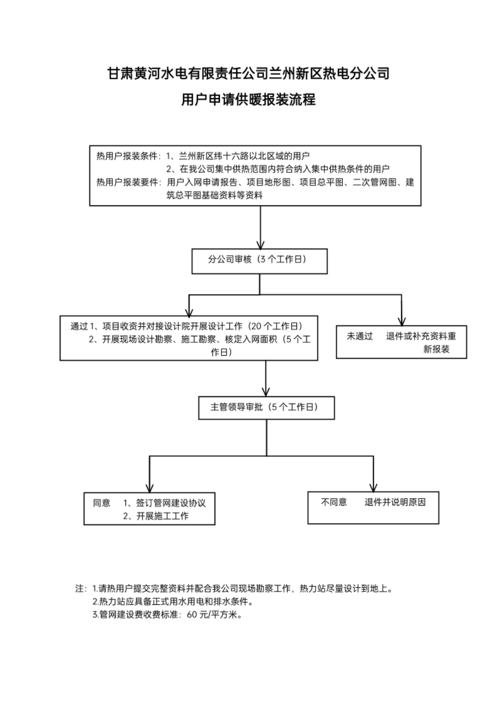 甘肃黄河水电有限责任公司兰州新区热电分公司 用户申请供暖报装流程