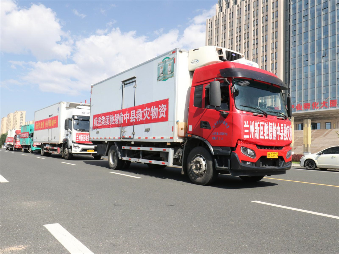 8月11日上午10时许,5辆救灾物资运输车从兰州新区整装出发,奔赴遭受山洪灾害的兰州市榆中县。兰州新区党工委委员、管委会副主任孙敏出席发车仪式并带队奔赴榆中。