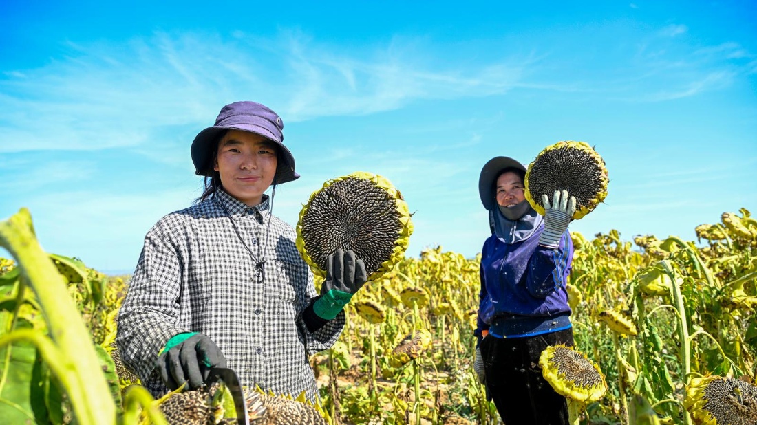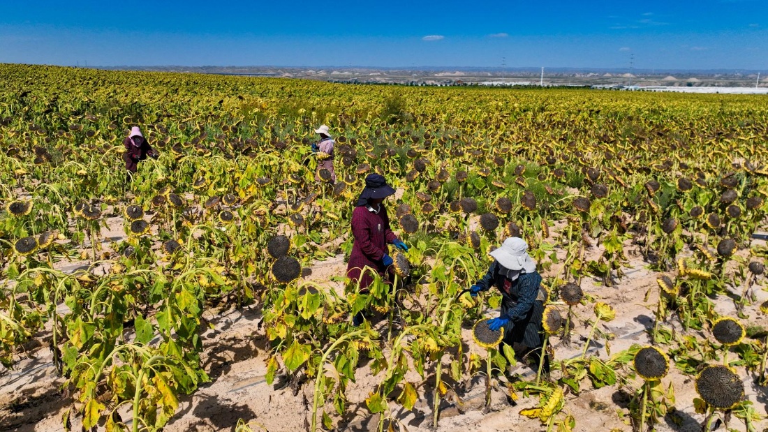 金秋时节,兰州新区广袤的田野上迎来耀眼“丰”景。在西岔镇向日葵种植基地,连绵不绝的金色花海已褪去盛装,结出累累硕果; 工人们穿梭田间,有序进行采收、插盘作业,呈现出一派繁忙的丰收画卷。