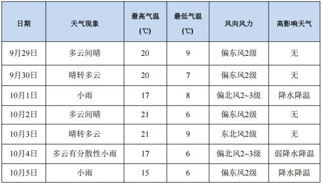 一、未来一周(9月29日-10月5日)天气趋势预报