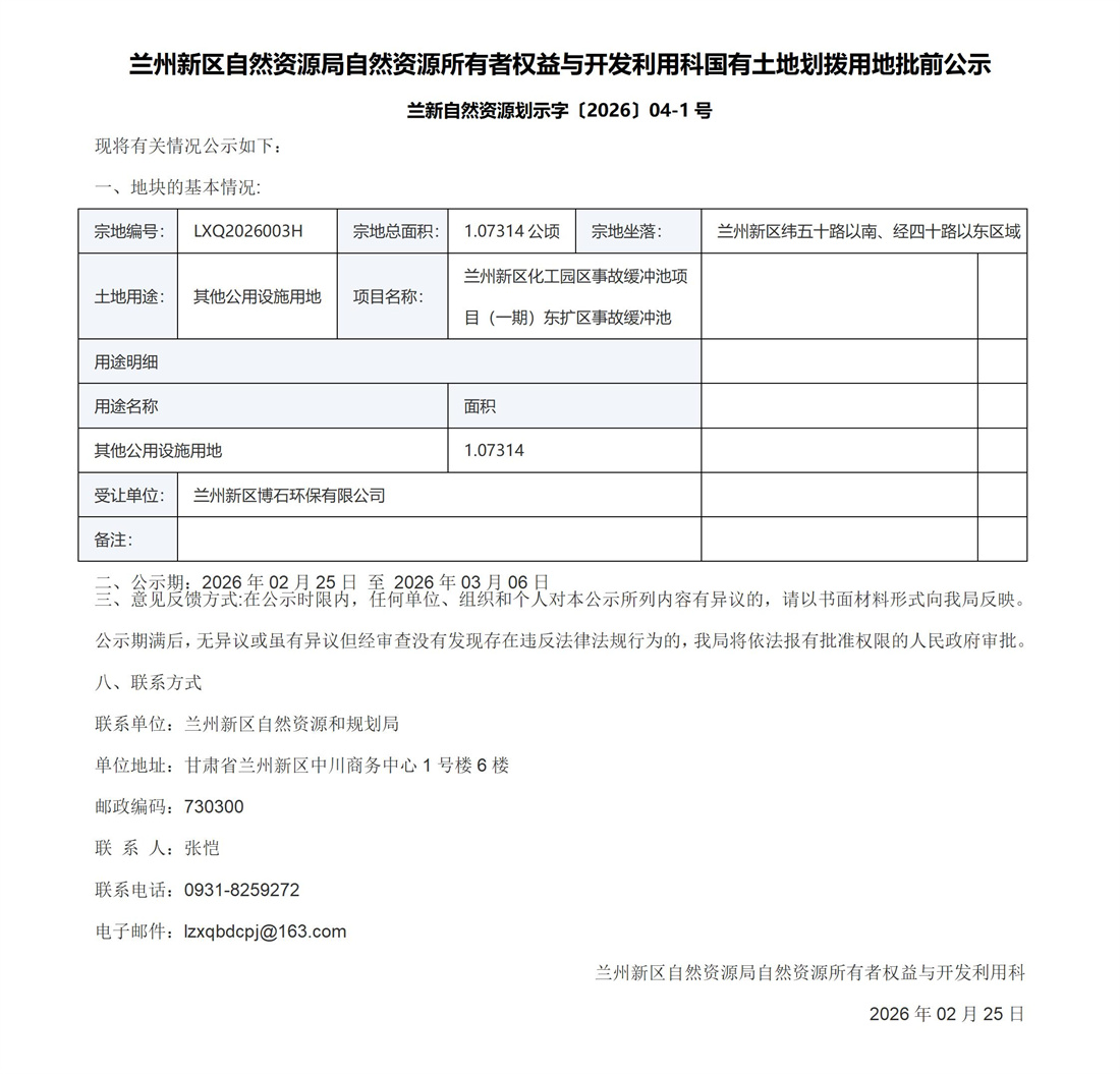 兰州新区自然资源和规划局国有土地划拨用地批前公示