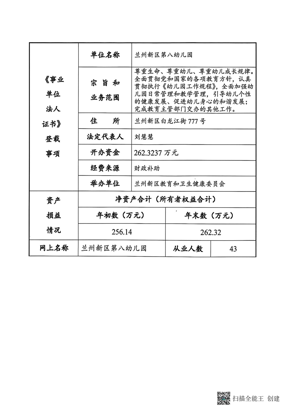 兰州新区第八幼儿园2025年度事业单位法人年度报告书