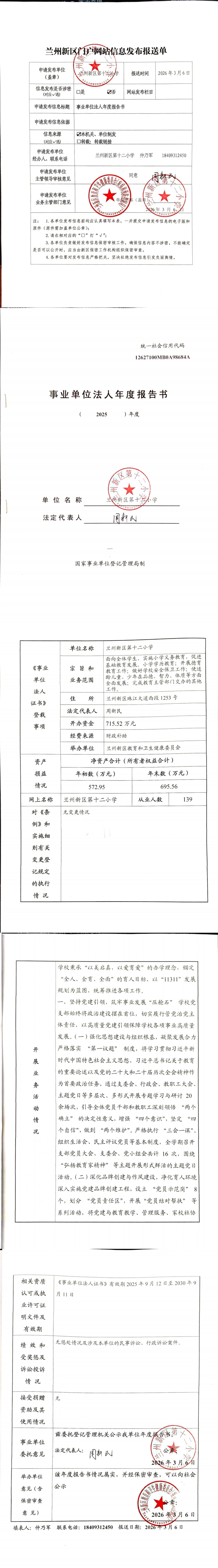 兰州新区第十二小学2025年度事业单位法人年度报告书