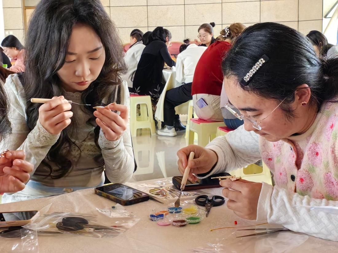 3月6日,为庆祝“三八”国际妇女节,兰州新区妇联在兰州新区图书馆举办“巾帼绽芳华,匠心守非遗”掐丝珐琅非遗体验活动。