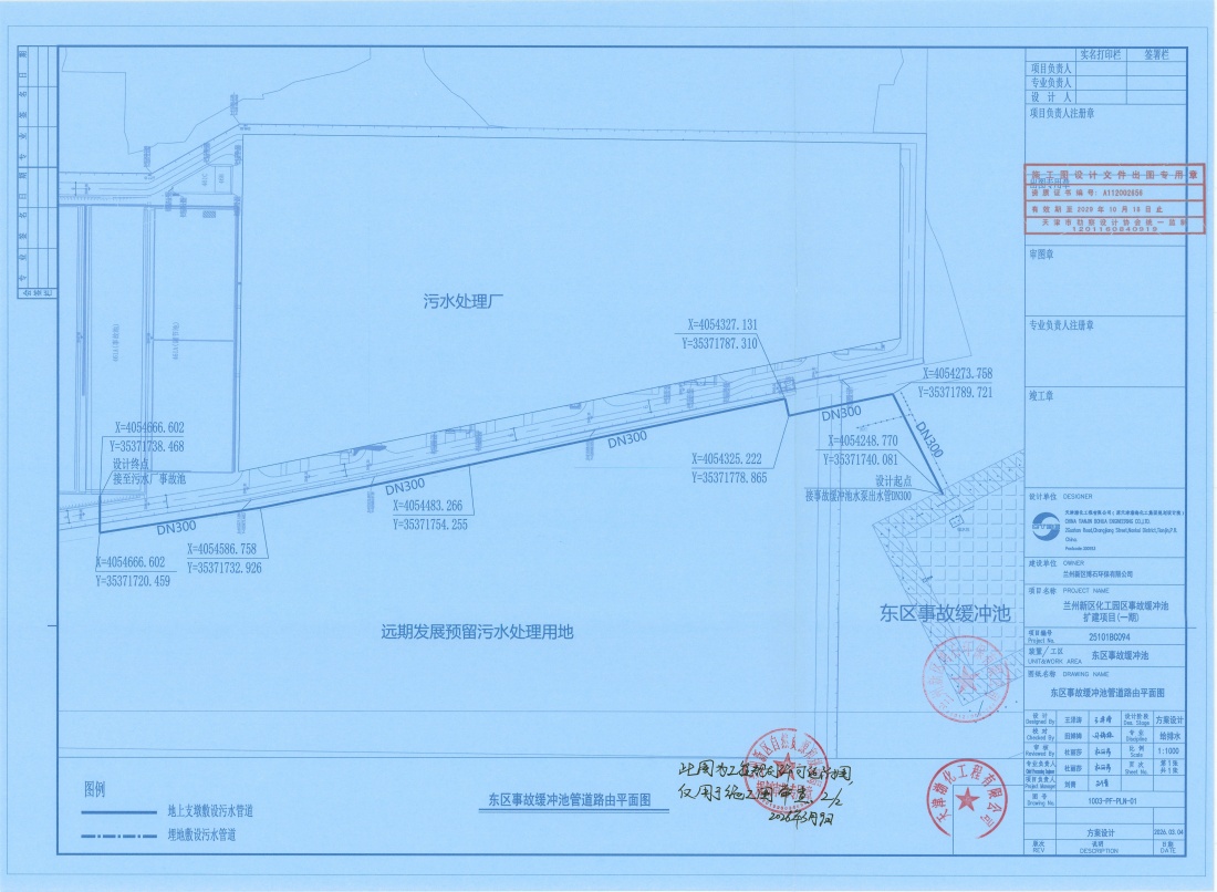 2.东区事故缓冲池配套回流管道:起点为东区事故缓冲池水泵出水管,终点接至污水处理厂现状事故池。