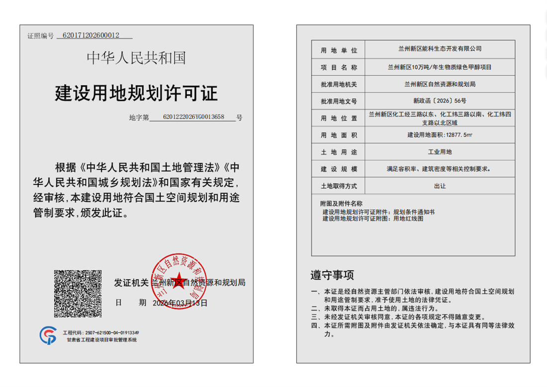 项目名称:兰州新区10万吨/年生物质绿色甲醇项目