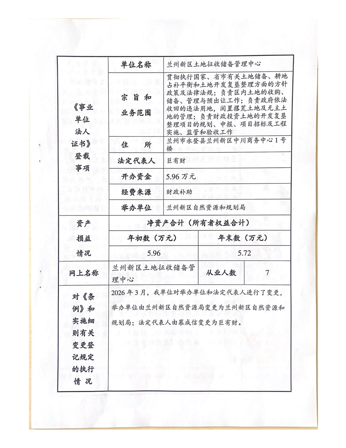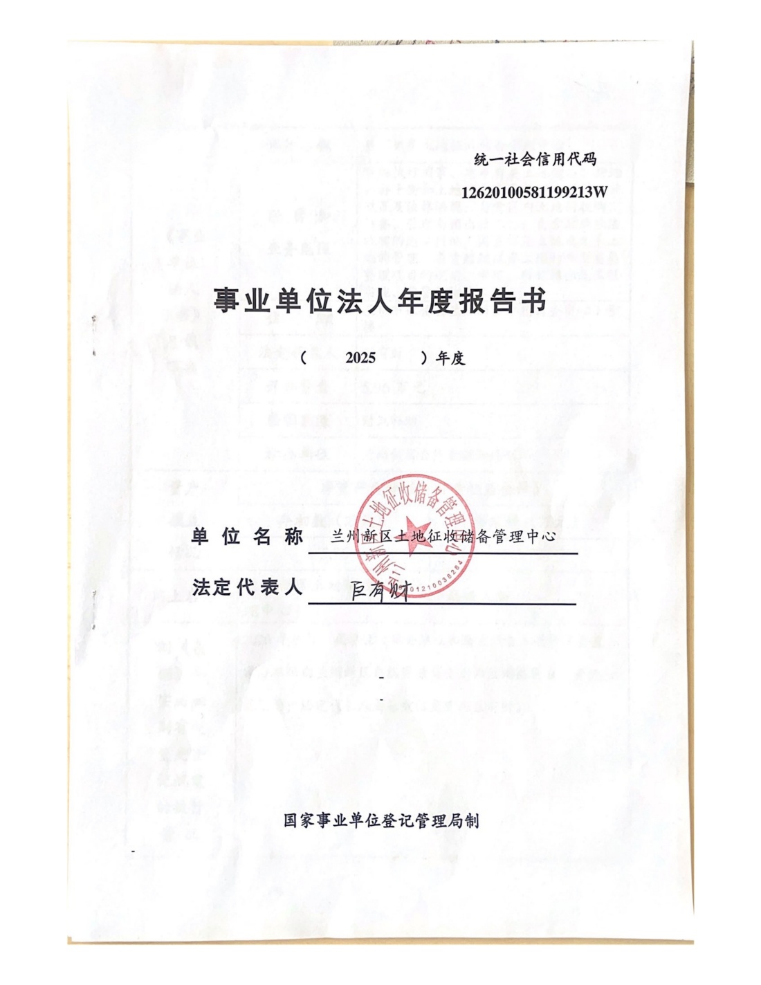 兰州新区土地征收储备管理中心2025年度事业单位法人年度报告书