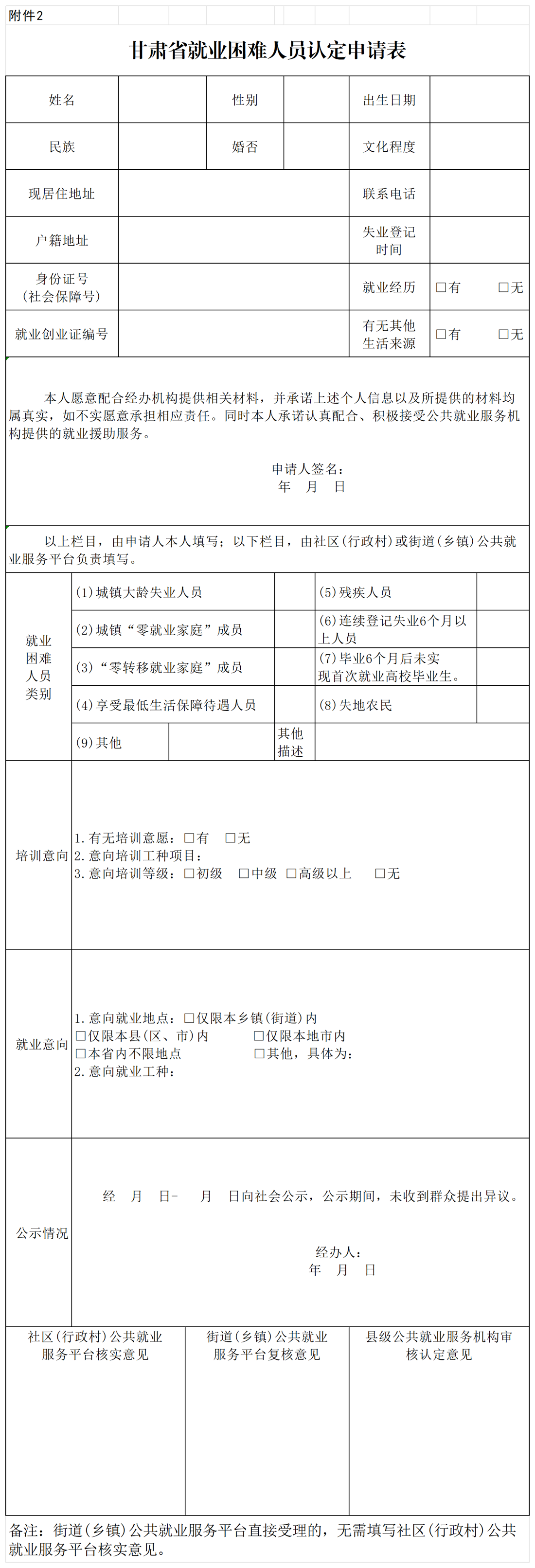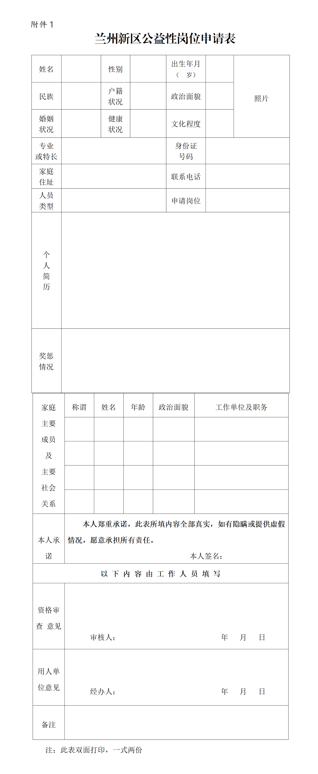 附件:兰州新区公益性岗位申请表及甘肃省就业困难人员认定申请表