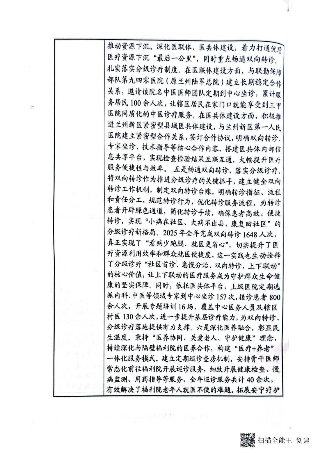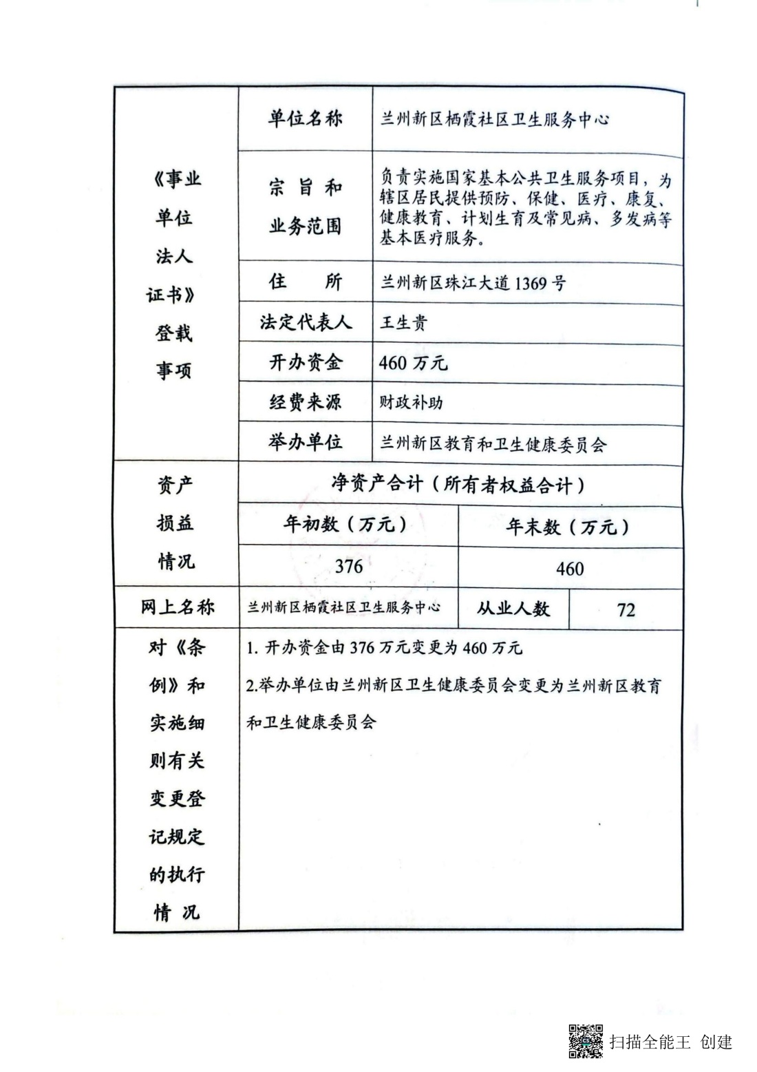 兰州新区栖霞社区卫生服务中心2025年事业单位法人年报报告书