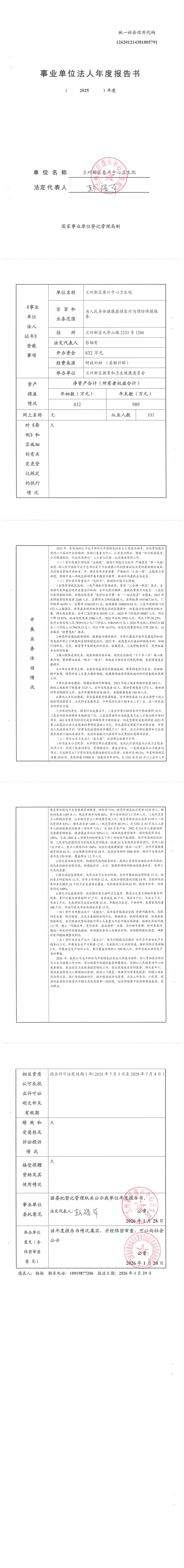 兰州新区秦川中心卫生院事业单位法人年度报告书