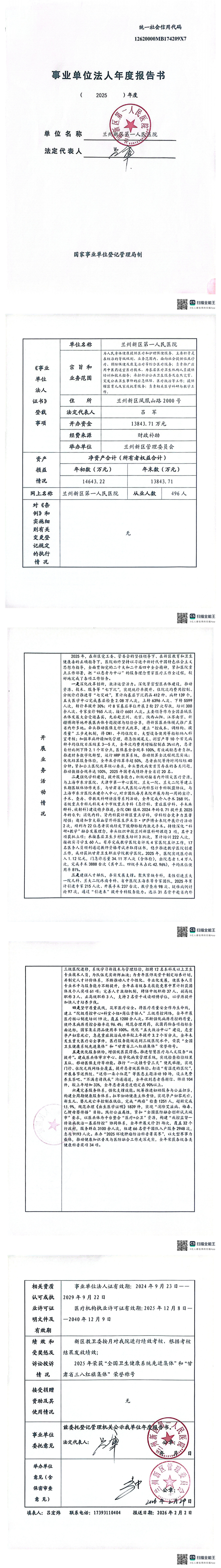 兰州新区第一人民医院2025年度事业单位法人年度报告书