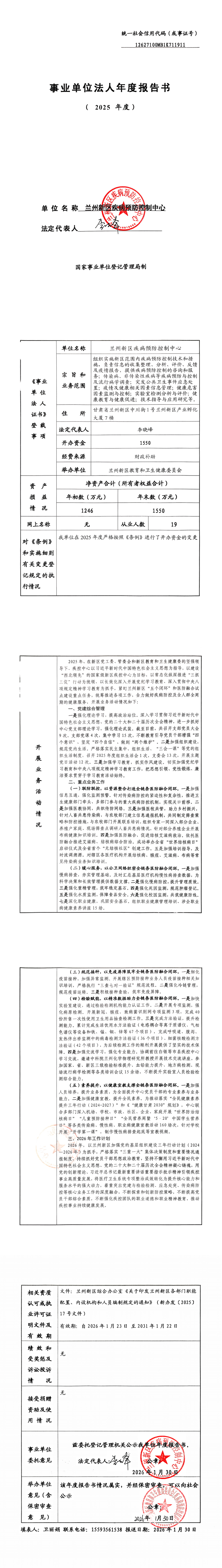 兰州新区疾病预防控制中心2025年度事业单位法人年度报告书