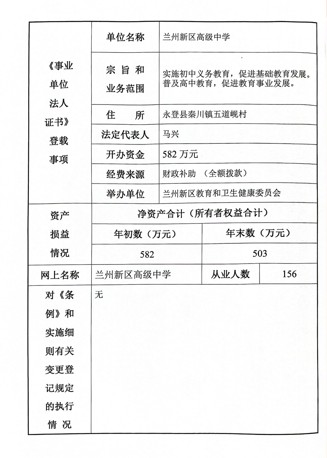 兰州新区高级中学2025年度事业单位法人年度报告书
